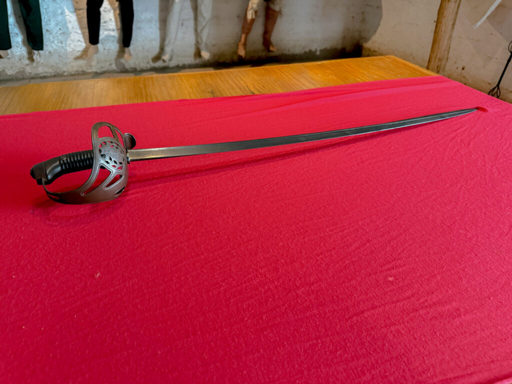 Se trata de un sable de gala correspondiente al año 1898, perteneciente al cuerpo de Granaderos a Caballo, que fue incorporado a la colección del Campo Histórico a través de una donación del Museo Patrio de Mar del Plata, gestionada por el Municipio y el propio Campo Histórico.